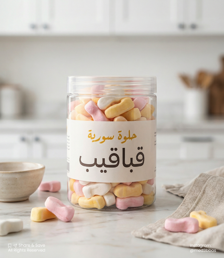 الخلفية ضبابية بلطف (مطبخ منزلي عصري بألوان بيضاء) (طاولة مطبخ حديثة، خزائن بيضاء أنيقة)، مع عمق مجال مدروس (Shallow depth of field) يحافظ على تركيز بصري كامل على البرطمان والمنتج، ويمنح الصورة طابعًا إعلانيًا احترافيًا عالي المستوى.